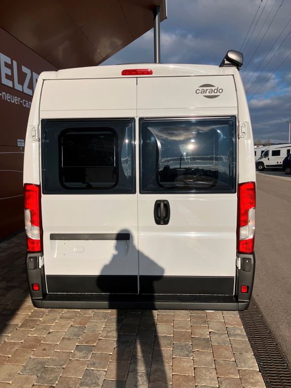- Serienausstattung: Peugeot 3,5t 140 PS Manuell Euro 6 E-BIS, Wohnwelt Grafit, Chassisaußenfarbe Ice White, Beklebung Carado Standard