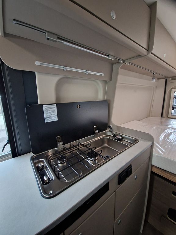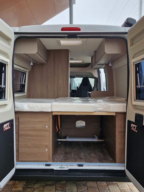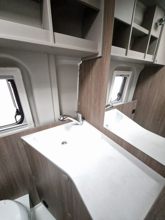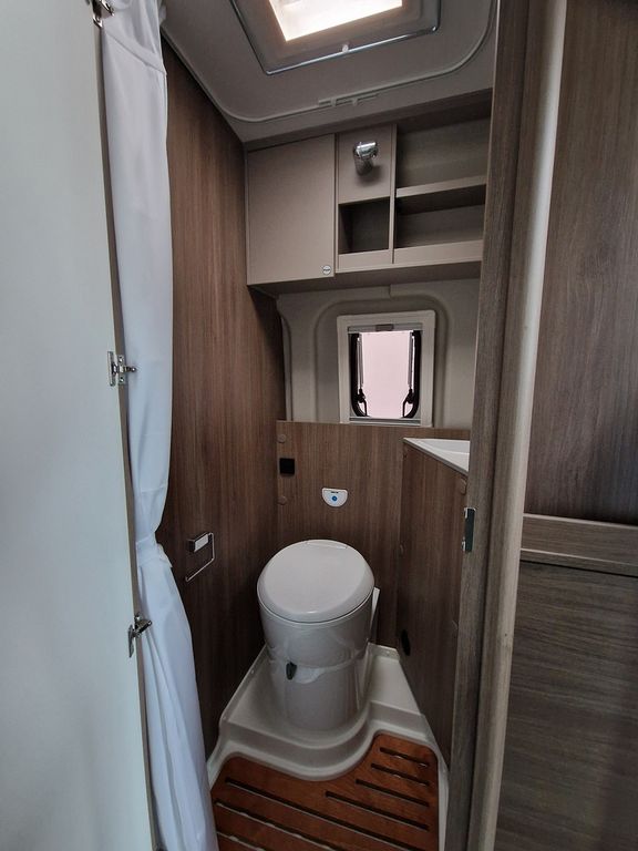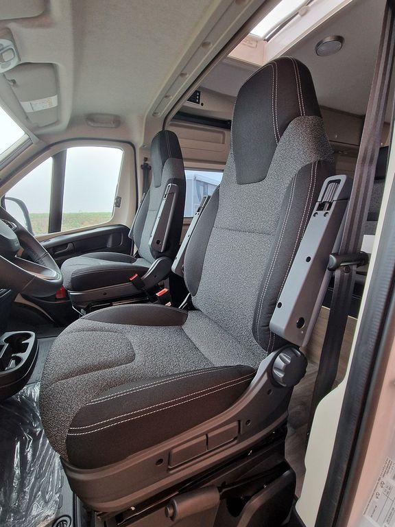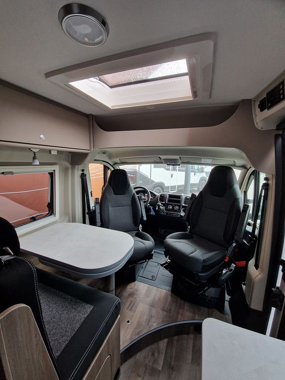 - Basic Paket (Dachhaube Midi Heki 70 x 50 cm über Sitzgruppe, Duschausstattung, Fenster im Bad, Kleiderstange in der Nasszelle, Breite Einstiegsstufe, Drehplatte für Tischerweiterung an der Sitzgruppe)