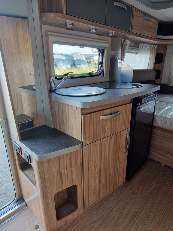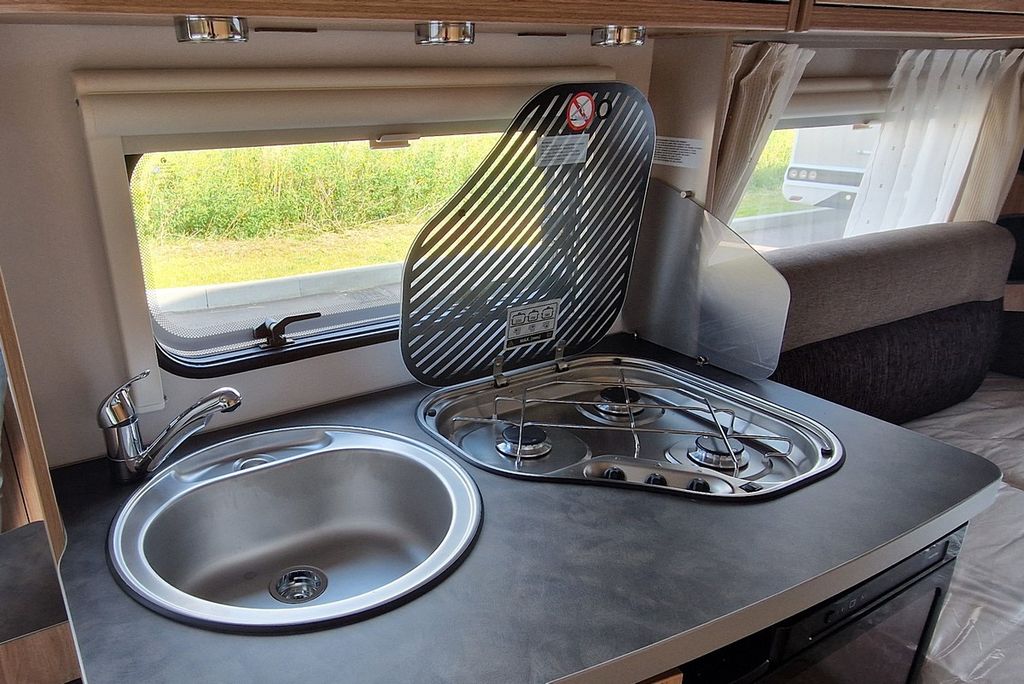 - Moving-Paket (Autarkpaket (95 Ah AGM-Aufbaubatterie, Ladegerät mit integriertem Booster), Fliegenschutz-Rolltür (gesamte Türhöhe), bedienfreundlich durch seitliche Führung, Deichsel-Fahrradträger Thule Caravan Superb für zwei Fahrräder, max. Traglast 60 kg (für E-Bikes geeignet), Abstützfuß (4 Stk.) für Caravanstützen: Verhindert Einsinken oder Wegrutschen der Stützen, Deichselstützrad mit integrierter Stützlastanzeige, 22 l Abwassertank, rollbar (Unterbringung im Gaskasten), Steckdosenpaket (2 x 230 V Zusatzsteckdosen im Wohnraum und in der Küche))