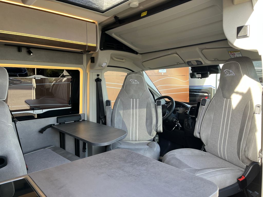 - Assistenz & Komfort Premium (Lackierte Stoßfänger vorne (light), Radlaufverbreiterung (heavy), Notbremsassistent, Verkehrsschilderkennung, Seitenwindassistent, Aufmerksamkeitsassistent, Intelligenter Geschwindigkeitsassistent, Adaptive Geschwindigkeitsregelanlage (ab 30 km/h), 360 Grad Parksensoren, Toter Winkel Assistent und hintere Querverkehrserkennung, Alufelgen 16", Seitz S4 Luxusfenster, Techno-Trim Armaturenbrett, DAB Antenne im Außenspiegel, USB Ladeanschluß, Nebelscheinwerfer, Außenspiegel elektr. verstellbar, beheizbar und anklappbar, Radiovorrüstung mit 4 LS, Bedientasten für Radio am Lenkrad, Fahrerhausfaltverdunkelung, Induktive Ladestation für Mobiltelefon, Digitales Cockpit, Spurhalteassistent und Spurhaltezentrierung, Captain Chair Sitze drehbar mit Armlehnen, Lederlenkrad, Trittstufe breite Ausführung, Ambienteklappe, Digitaler Rückspiegel, Rückfahrkamera, Ladebooster, Traction +, Allwetterreifen, Klimaautomatik, 10" Infotainment Touchscreen, DAB, Bluetooth, Navigation)