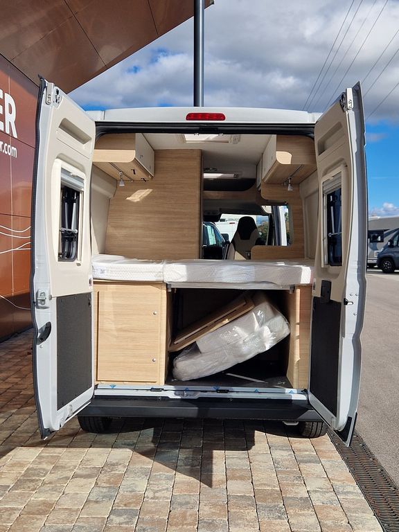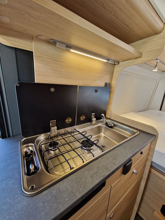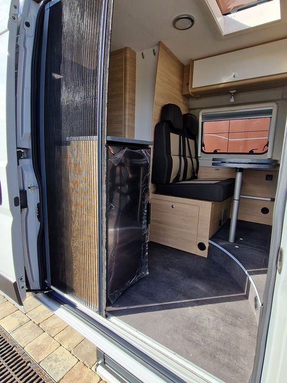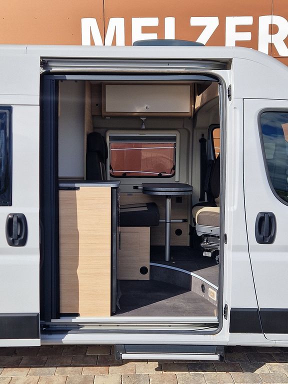 - *Ausstatung:* Basic-Paket (Elektrische Trittstufe, Moskitorollo Schiebetür, Dachhaube Midi Heki über Sitzgruppe Fahrerhausverdunkelung Stoff, Duschausstattung)