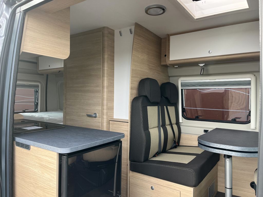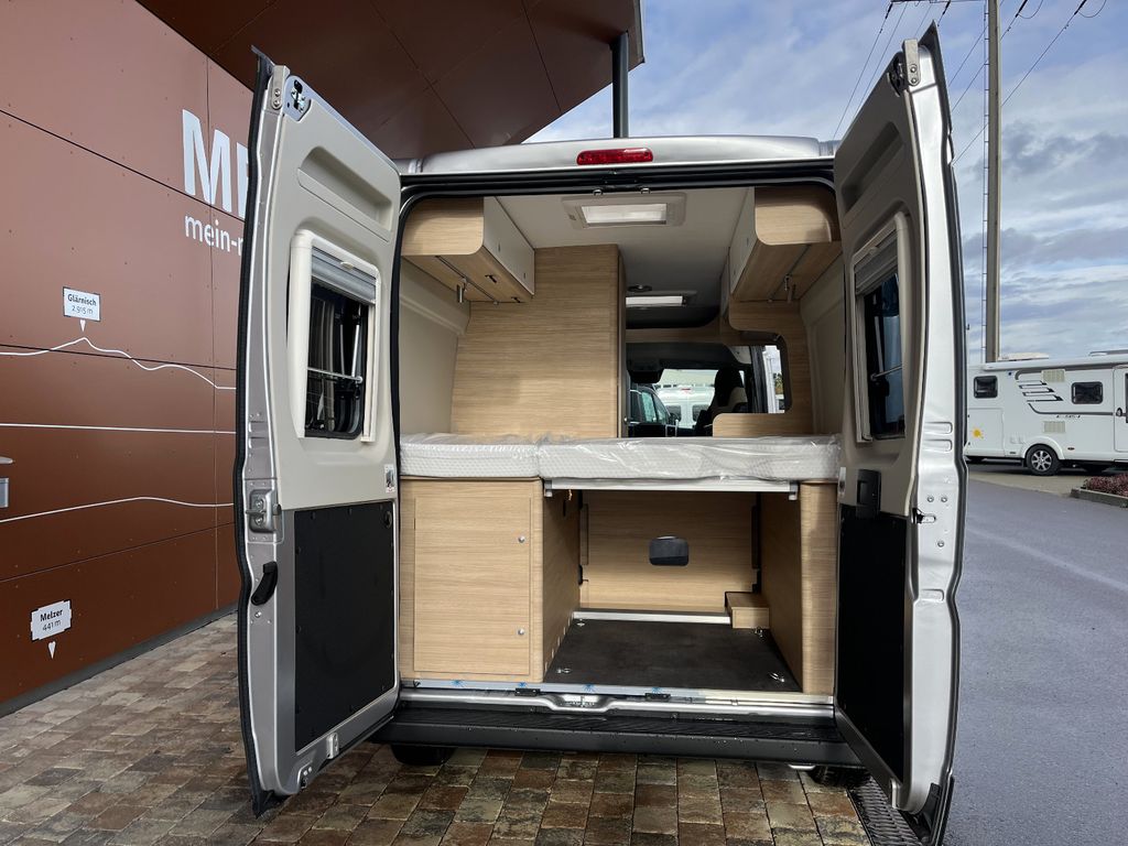 - *Ausstatung:* Basic-Paket (Elektrische Trittstufe, Moskitorollo Schiebetür, Dachhaube Midi Heki über Sitzgruppe Fahrerhausverdunkelung Stoff, Duschausstattung)